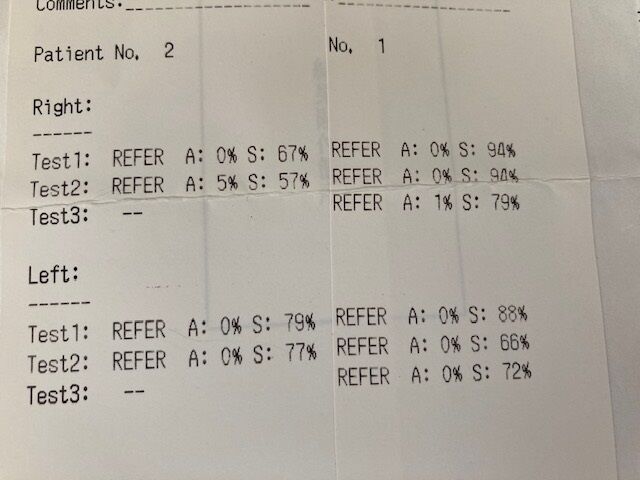 ↓息子の聴覚スクリーニング2回やって2回ともREFERでした。