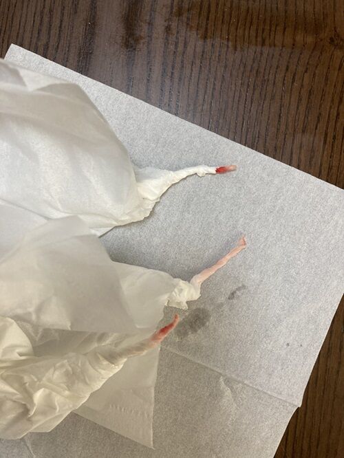鼻水がたくさん出てるので、耳だれも多くなり、耳だれに血も交じっています。